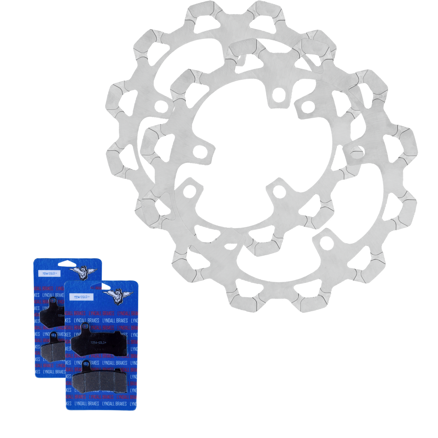 Two front rotors and matching brake pads for 2024 non CVO touring models.